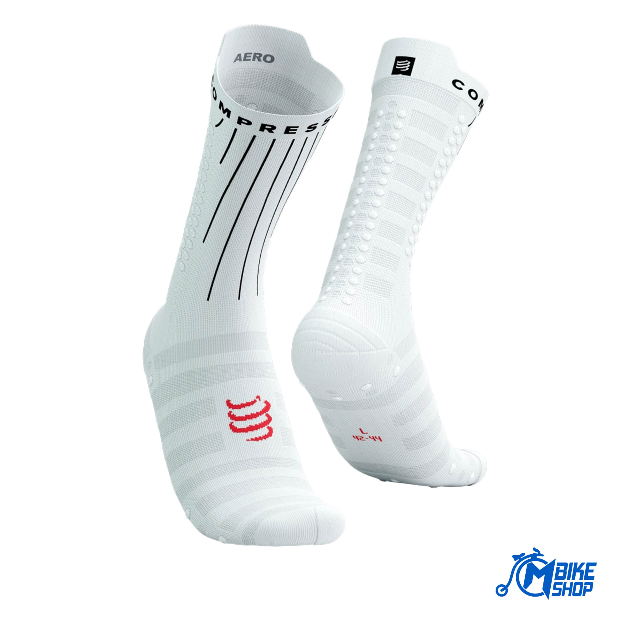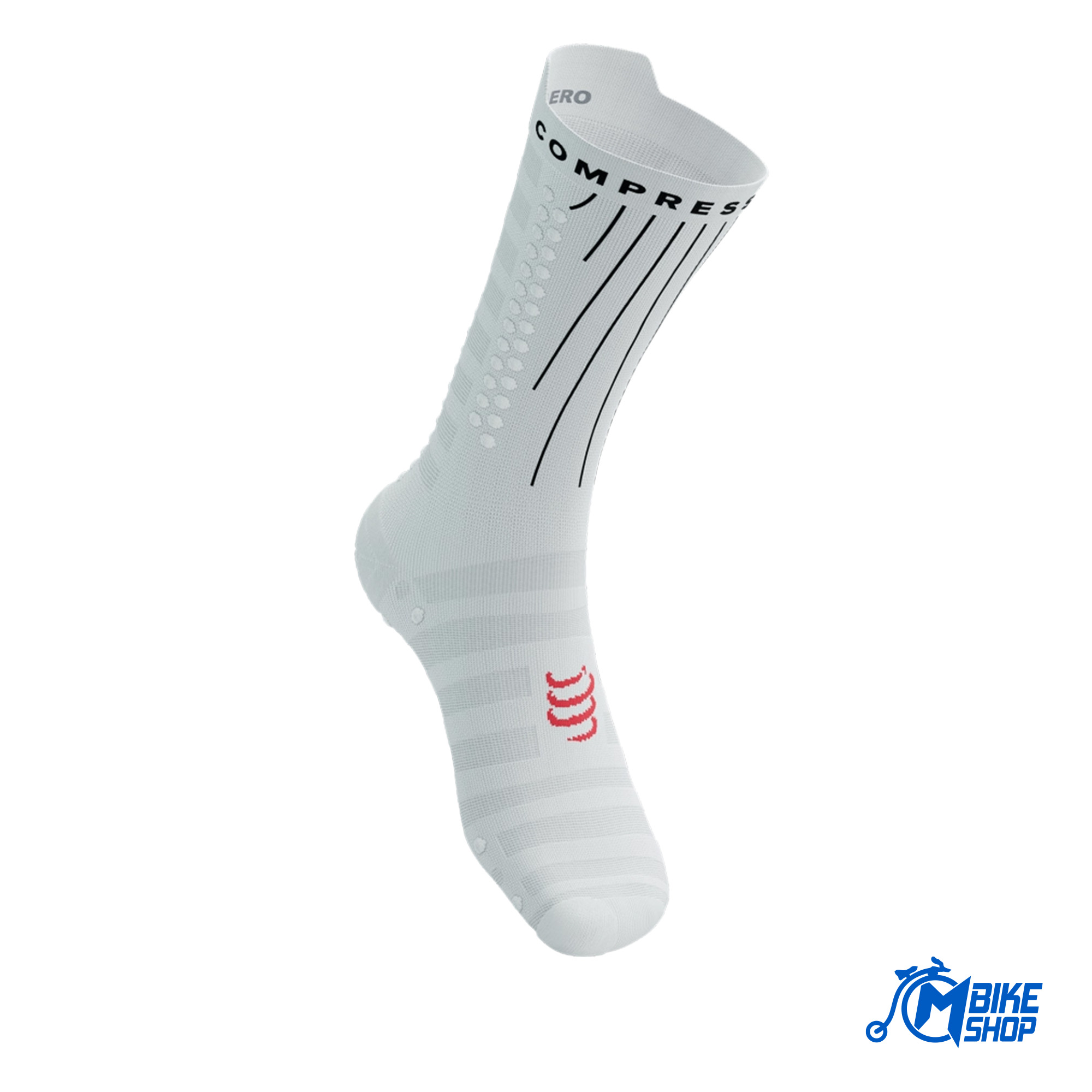 Objedinjujući tehnologije Compressport modela čarapa sa najboljim performansama, potpuno nove Aero Sock podižu performanse u više sportova na potpuno novi nivo brzinom koja prkosi zraku. Testirane i optimizovane u zračnom tunelu, prednja tkanina ima strukturirane linije za povećanje turbulacije graničnog sloja (površine) i uštedu više od minute tokom vožnje biciklom. Potpuno nove Aero.dots grade liniju usmjeravajući protok zraka kako bi se smanjila turbulencija na zadnjoj strani čarape, smanjio otpor i uštedio još nekoliko vati. Struktura stopala slijedi dizajn Ultralight čarapa za trčanje, sa pero laganom mrežicom koja upija znoj za optimalnu ventilaciju i termoregulaciju u vrućim uslovima. Lagana potpora za luk sprječava uvijanje i iritaciju tkanine, sa dodatnom podstavom od frotira preko nožnog palca koja vas štiti od pocrnjelih noktiju i modrica. Pod nogama, pametan uzorak od 50% 3D.Dots i 50% Flat.Dots ublažava udarce i dodaje prianjanje u cipeli. Također pruža nježnu mikrostimulaciju za povećanje venskog povratka i odgodu umora, dok je ventilacija također poboljšana jer zrak cirkulira između tačkica. Na zadnjoj strani čarapa ultralaka mreža brine se za termoregulaciju bez dodavanja težine, a puna Ahilova pruga u tehnologiji tačkica nudi umirujuću potporu u svim disciplinama.