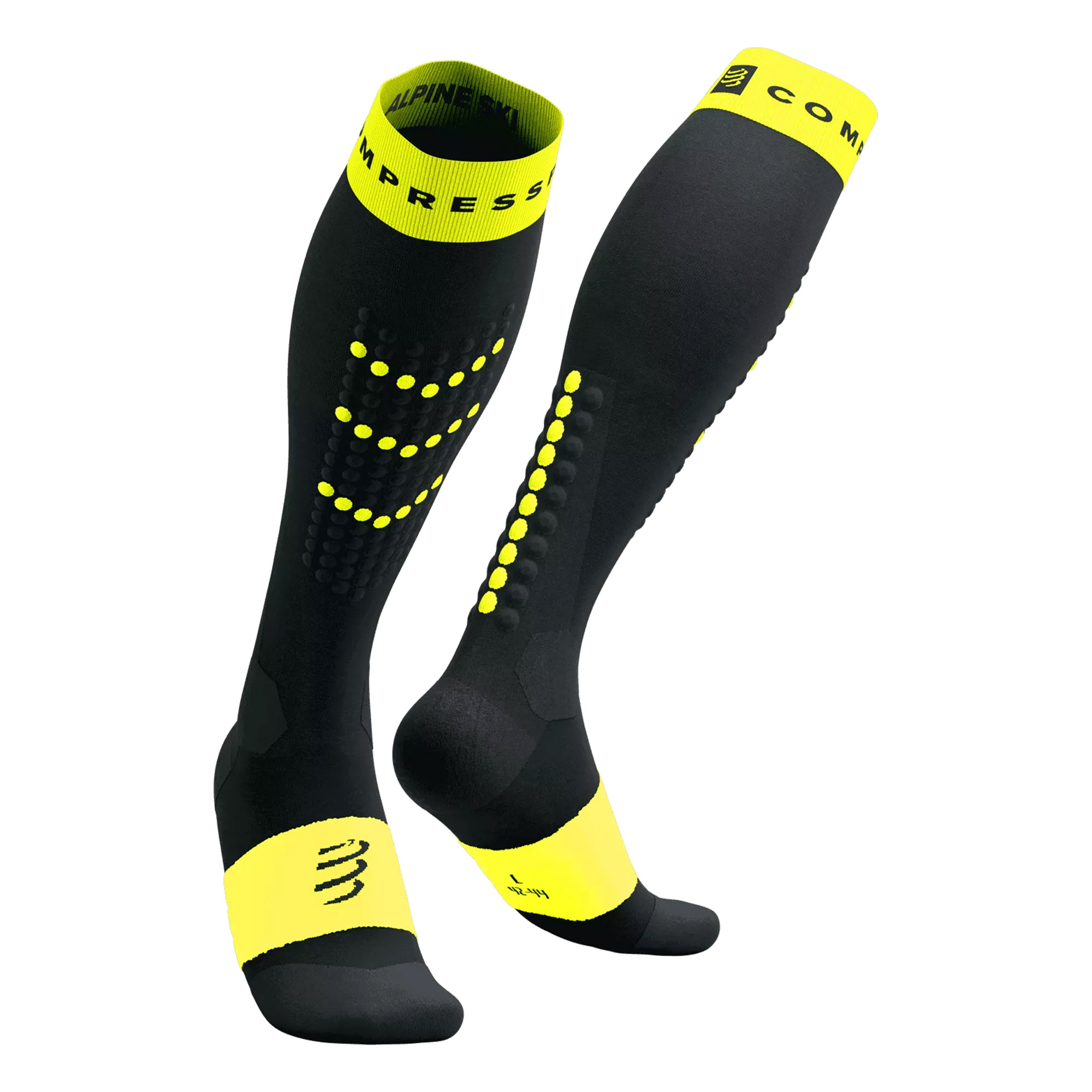 Jesu li hladna stopala razlog zašto rijetko uživate u cjelodnevnom skijanju? Niste sami, a Compressport čarape za skijanje dobile su opsežnu nadogradnju kako bi vam osigurali da maksimalno iskoristite zimsku čaroliju. Ove skijaške čarape su kompresivne, zaštitne i prije svega tople. Pažljiva mješavina merino vune i vlakana dudove svile kombinovana je u debelom frotirnom tkanju kako bi se stvorile bujne, elastične ploče za maksimalnu udobnost, čak i u najhladnijim danima. Postupna kompresija potiče protok krvi, održavajući cirkulaciju čak i kada sjedite na žičari i dodatno vas štiti od utrnulih prstiju. Ova tehnologija također doprinosi smanjenju vibracija mišića za manje nelagode, manje bolova i lakše noge. Široka površina 3D tačkica na potkoljenici udružuje se sa ekstra velikim tačkicama na Ahilovoj tetivi kako bi ublažila i zaštitila od pritiska skijaške cipele. Čvrsta potpora svodu stopala sa tehnologijom pump up dodatno potiče venski povratak i sprječava uvijanje čarape i stvaranje žuljeva. Na vrhu čarape, široki rub brine se za udobnost i sprječava klizanje materijala. Najtopliji model u Compressport skijaškoj ponudi, ove čarape vaš su odgovor za zabavne dane na stazama, bez obzira na uslove.