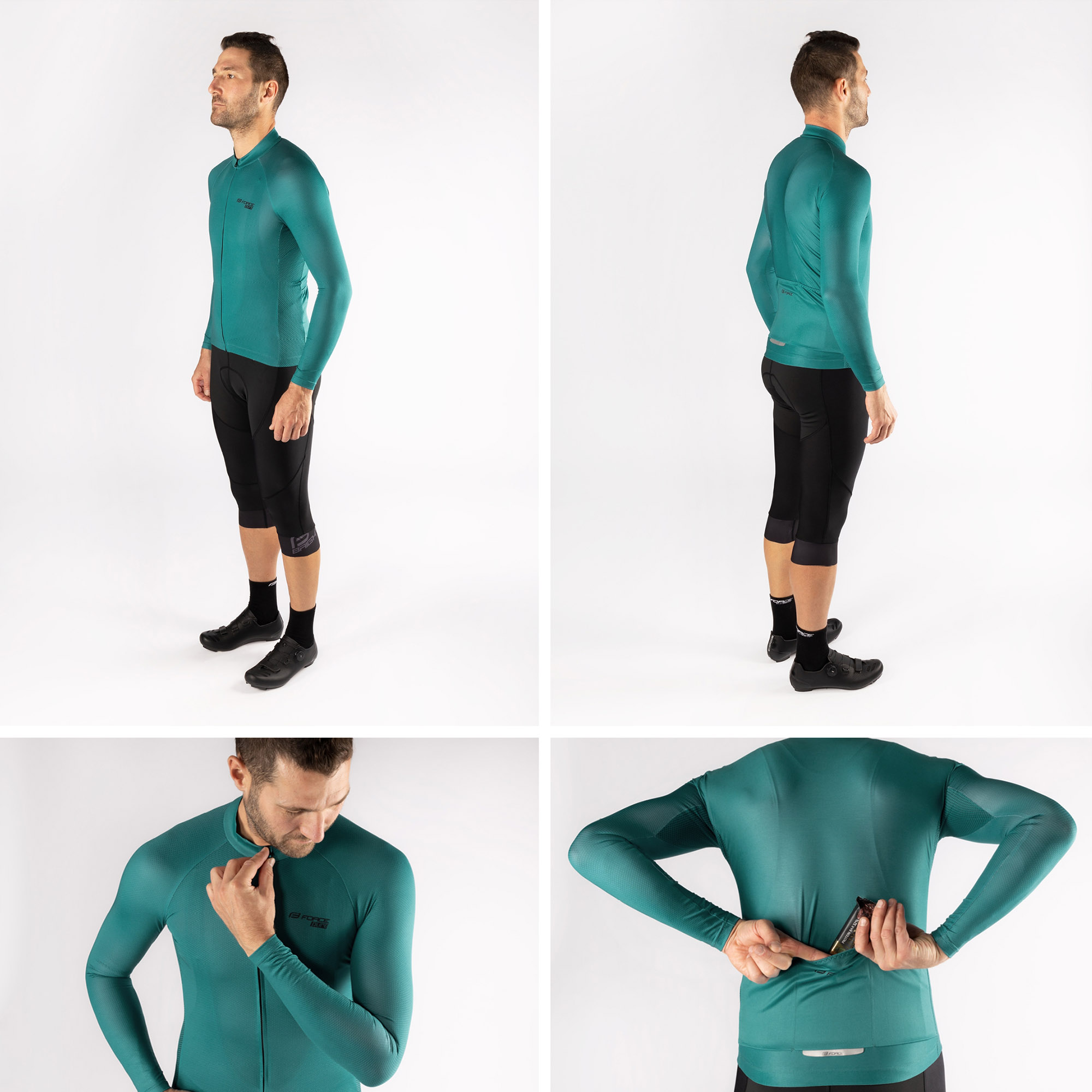 PočetnaProizvodiBiciklizamOdjećaMajice/dresoviDres FORCE Pure Dugi rukav Petrol Blue