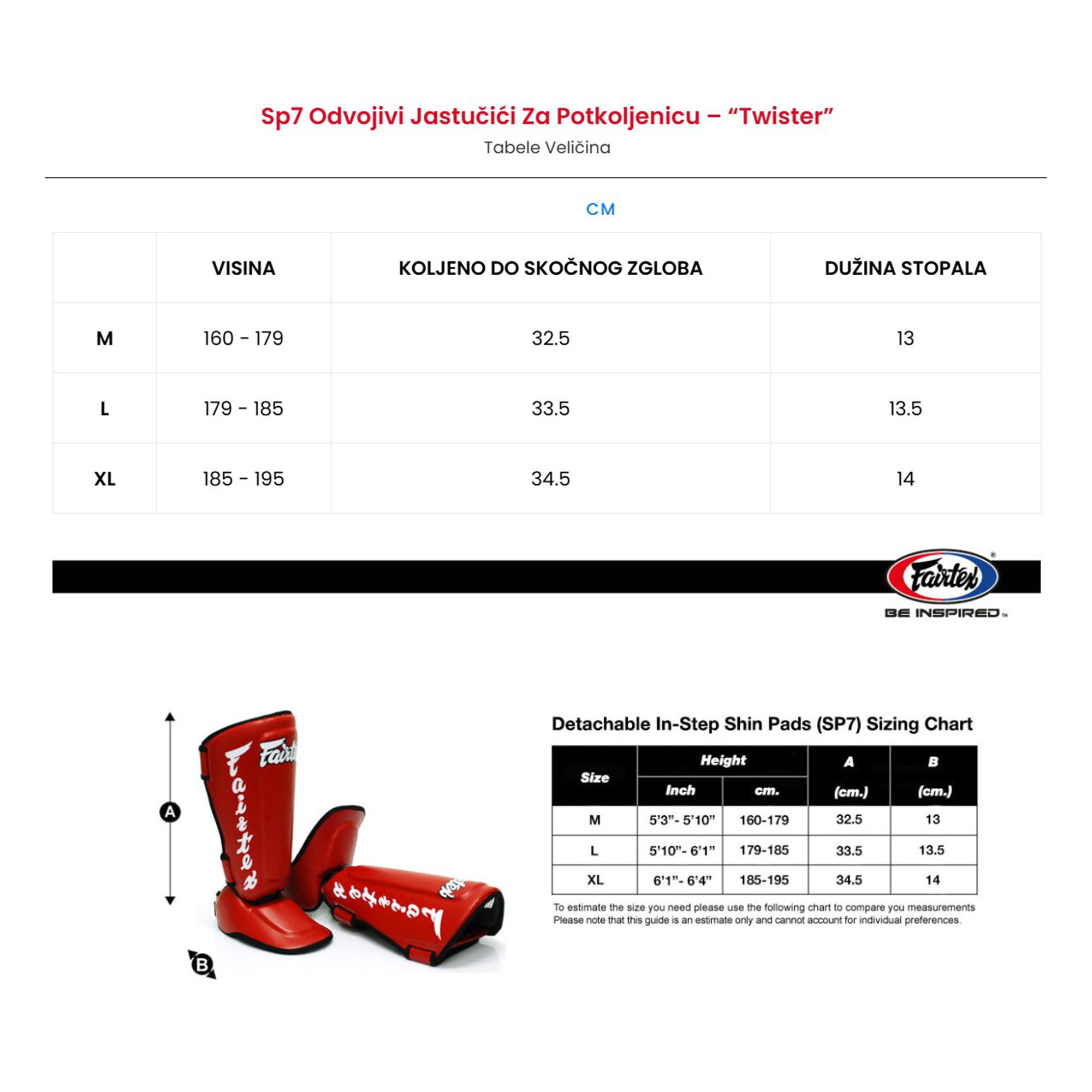 FAIRTEX SP7 “Twister” štitnici za potkoljenice su dizajnirani za sportiste koji zahtjevaju maksimalnu zaštitu, udobnost i fleksibilnost. Sa pojačanim jastučićem na potkoljenici i proširenom bočnom zaštitnom površinom, pružaju vrhunsku pokrivenost za intenzivan trening i sparing. Oni također uključuju potpuno odvojivi i podesivi štitnik u koraku (prsti). Bez šavova između potkoljenice i stopala, dizajn nudi maksimalnu udobnost. Jedinstveni okretni mehanizam omogućava podešavanje do 180 stepeni (gore-dole, lijevo-desno), osiguravajući prilagođeno pristajanje za svakog sportistu. Podesivi kaiševi na kukice i petlje vam omogućavaju da premjestite štitnik gore ili dole preko potkoljenice kako bi odgovarali tačnoj dužini vaše noge.
