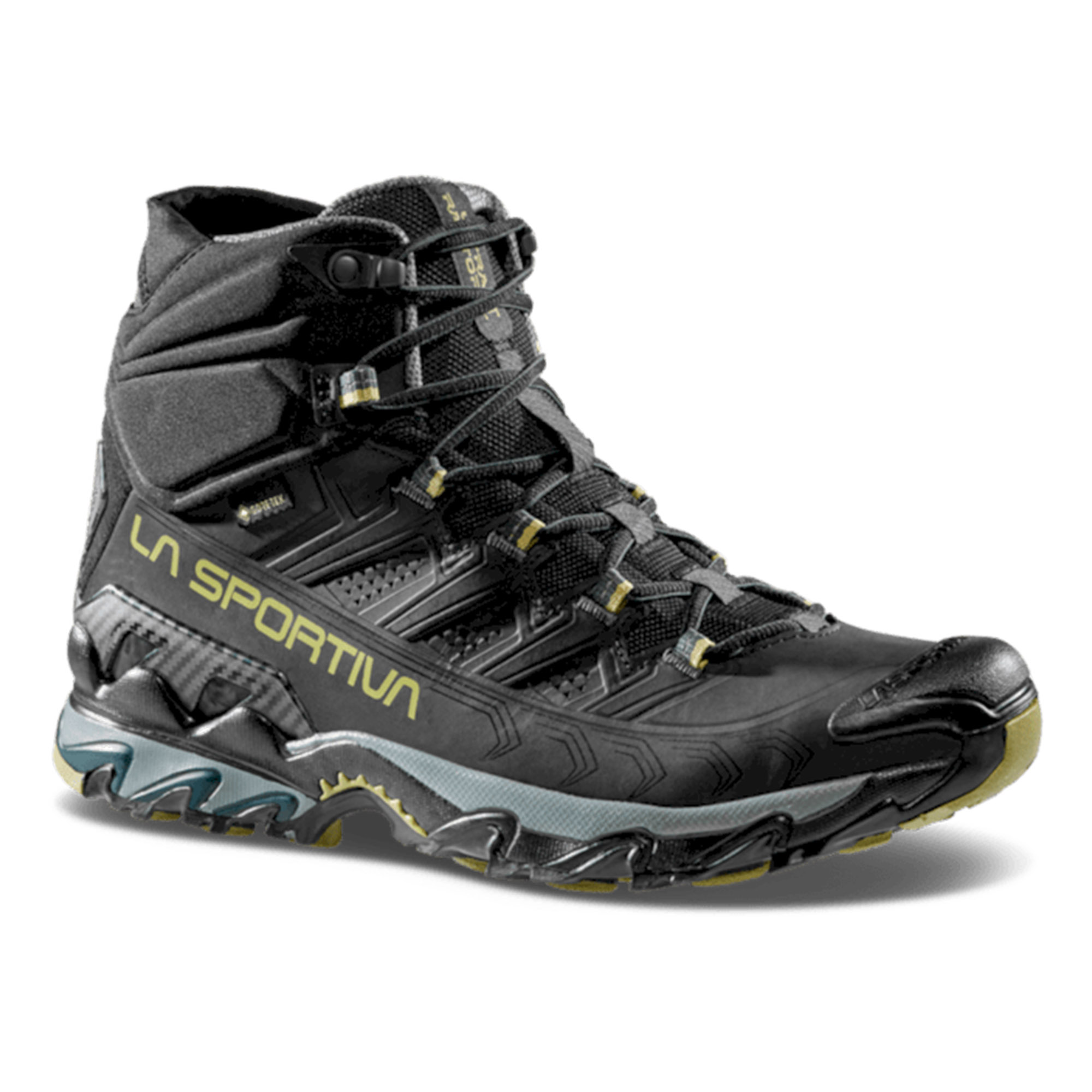 Ultra Raptor II Mid Leather GTX je kožna verzija modela Ultra Raptor II Mid, idealna za brzo planinarenje i izlete sa laganim opterećenjem. Gornji dio od nubuk kože ojačan je kompresijskim linijama koje garantuju obavijanje stopala i visoku stabilnost. Otporne su na habanje i prozračne, savršene su za planinarenje. Vodootporne su i prozračne zahvaljujući GORE-TEX Extended Comfort membrani. Mekani "Comfort Collar" štiti zglob od ulaska kamenja ili blata i integriše spojler koji se lako prilagođava za maksimalnu jednostavnost pristajanja. Zadnja stabilizacijska peta omogućava savršenu kontrolu.