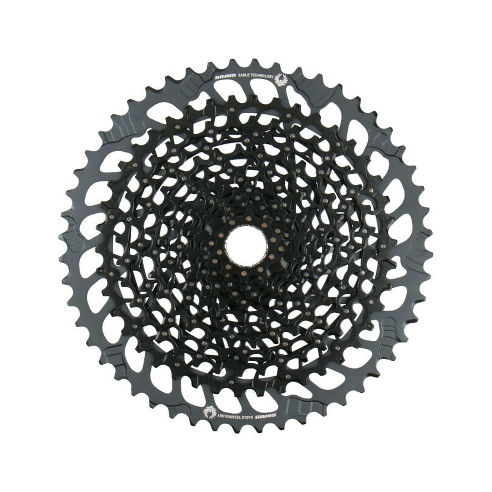 Bez obzira radi li se o nizbrdicama ili strmim usponima, XG-1275 kaseta pruža vam prave brzine sa 10-52 zuba na svakom terenu. Zupčanik od probušenog čelika i lančanik sa 52 zuba izrađen od aluminija osiguravaju visoku izdržljivost kasete. Zupčanici nisu spojeni paukom, već su zakovani klinovima od nehrđajućeg čelika. To ne samo da čini kasetu sa punim zupčanicima lakšom od konvencionalnih kaseta, već otvoreni dizajn nudi i izvrsno samočišćenje u blatnjavim uslovima. Zupci optimizovani SRAM-ovom X-Glide 2 tehnologijom osiguravaju optimalne performanse mijenjanja brzina pri mijenjanju brzina gore i dolje. Širi raspon prijenosa u poređenju sa Eagle kasetama sa 10-50 zuba ne samo da nudi više rezervi za izuzetno strme uspone. Sa povećanim rasponom prijenosa na 520%, visokoperformansni vozači mogu voziti sa većim lančanikom bez ugrožavanja sposobnosti bicikla za penjanje. Kao rezultat toga, pogon omogućava veću maksimalnu brzinu, a vozač također koristi veće lančanike kasete, koji su učinkovitiji.