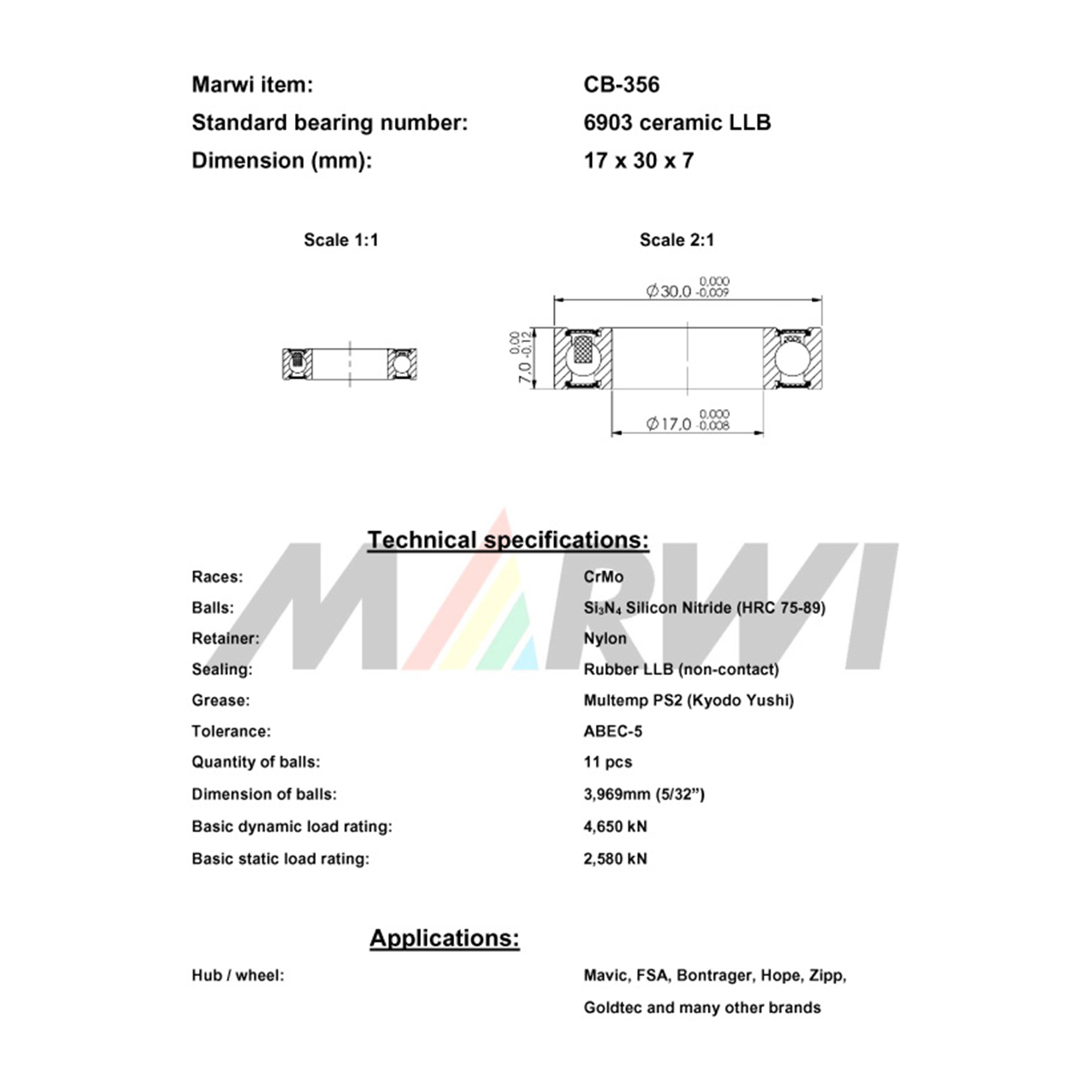 Keramički ležaj CB-356 17x30x7