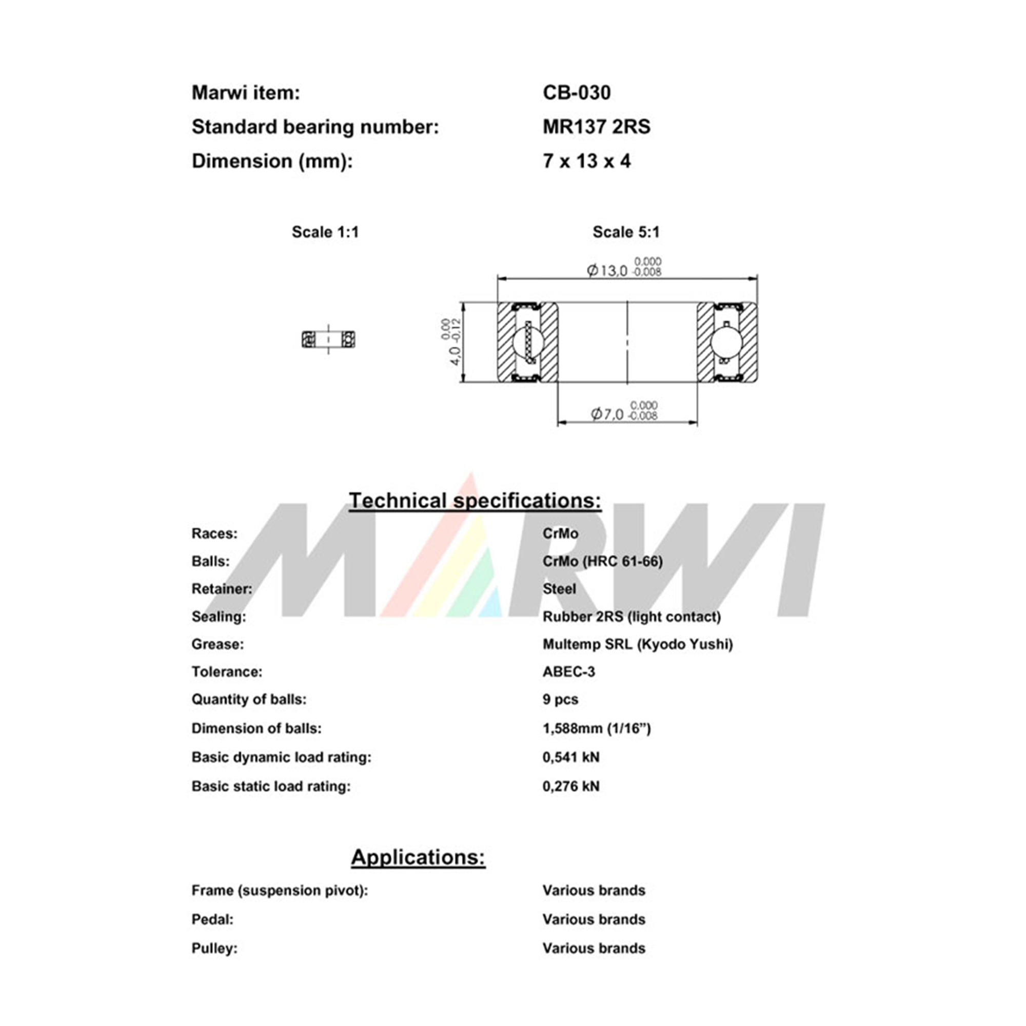 Ležaj CB-030 2RS 7x13x4
