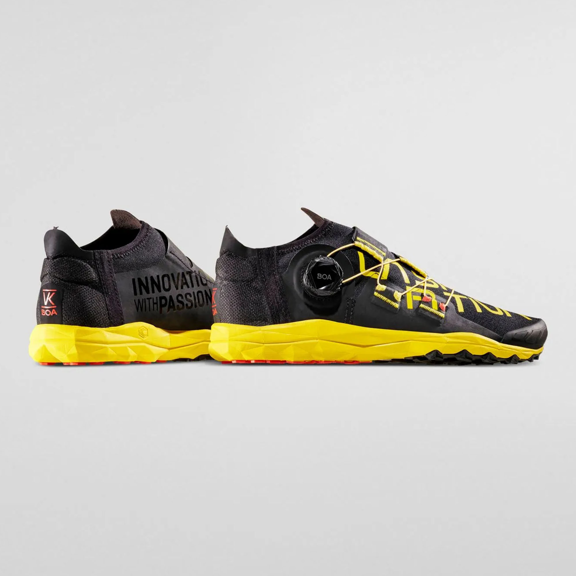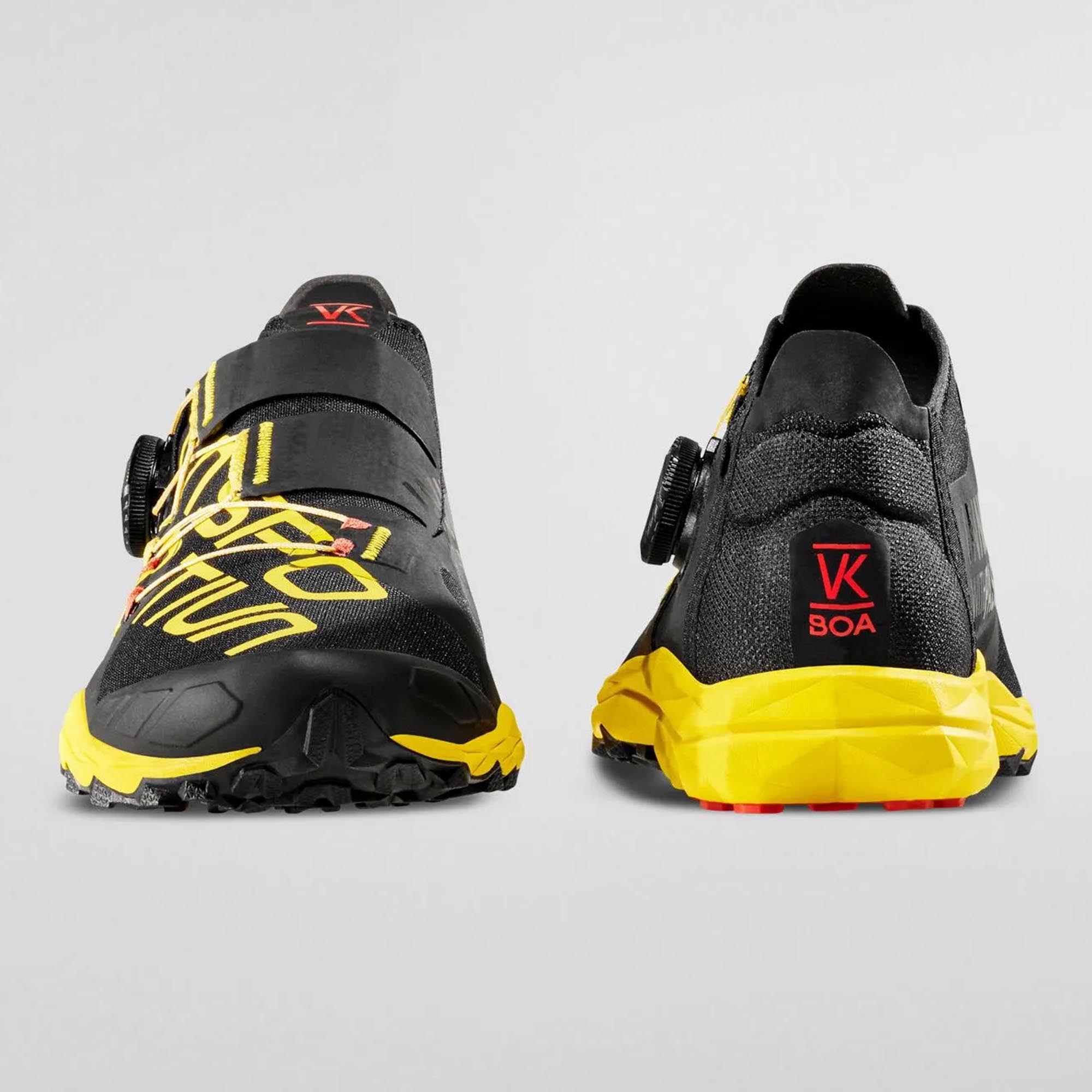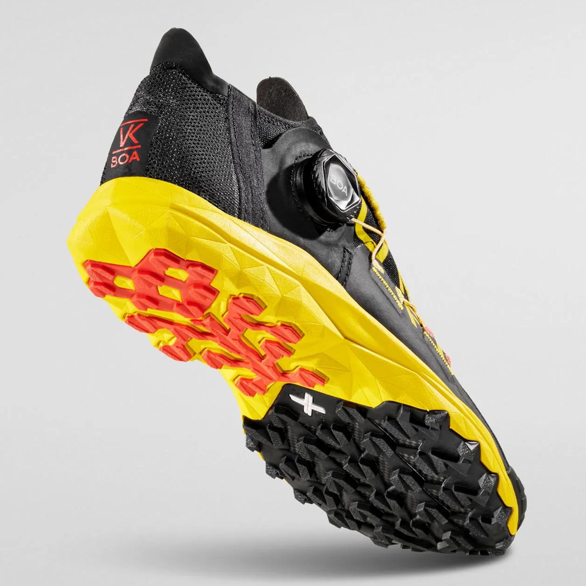 VK BOA su patike za trčanje po trailu dizajnirana za utrke Vertical Kilometer, razvijena sa rekorderima i sprinterima u toj disciplini, obogaćena sistemom brzog zatvaranja BOA™ Fit. Težina i volumen svedeni su na minimum za maksimalne performanse uzbrdo. Svaki detalj dizajniran je kako bi se težina svela na minimum. Brz, intuitivan i BOA™ Fit sistem vezanja: omogućava savršeno zatvaranje i čvrsto prianjanje; preklopi za zatvaranje integrišu BOA™ Fit sistem i savršeno se omotavaju oko stopala. Gornji dio u obliku čarape izrađen je od dvoelastične mreže kako bi se garantovala sloboda kretanja. 3D peta pruža maksimalnu udobnost i potporu peti. TPU kapa je lagana i štiti od udaraca. Super lagani FriXion White spoj je koncentracija tehnologije sa gaznim slojem samo tamo gdje je to potrebno. VK BOA: budite vertikalni!