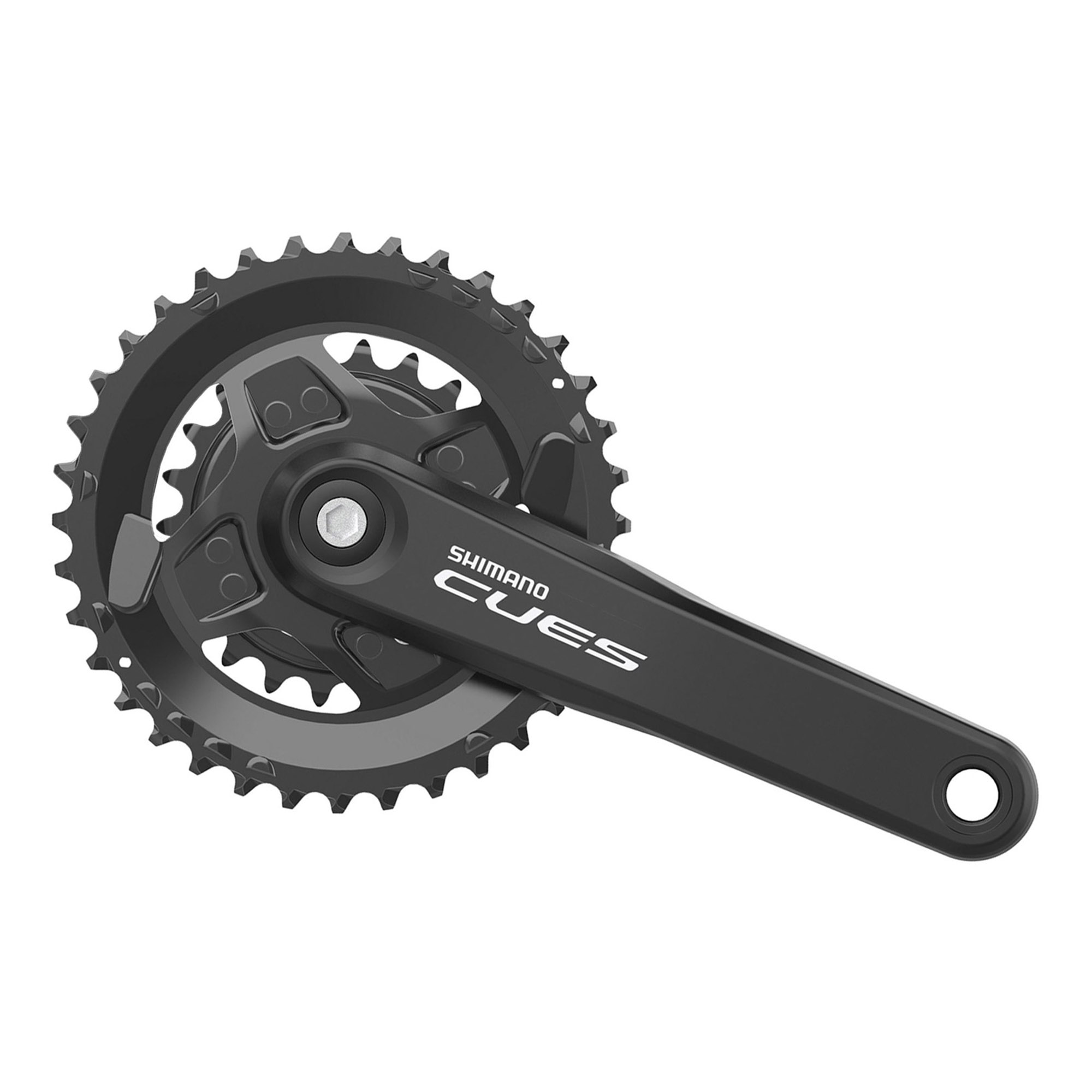 SHIMANO Cues FC-U4000 pogon nudi izvrsno držanje lanca i izvrstan prijenos snage za zabavnu vožnju po neravnom terenu. Ovaj pogon poziva na obilaske po neravnom terenu širokim rasponom prijenosnih omjera i skladnim pedaliranjem.