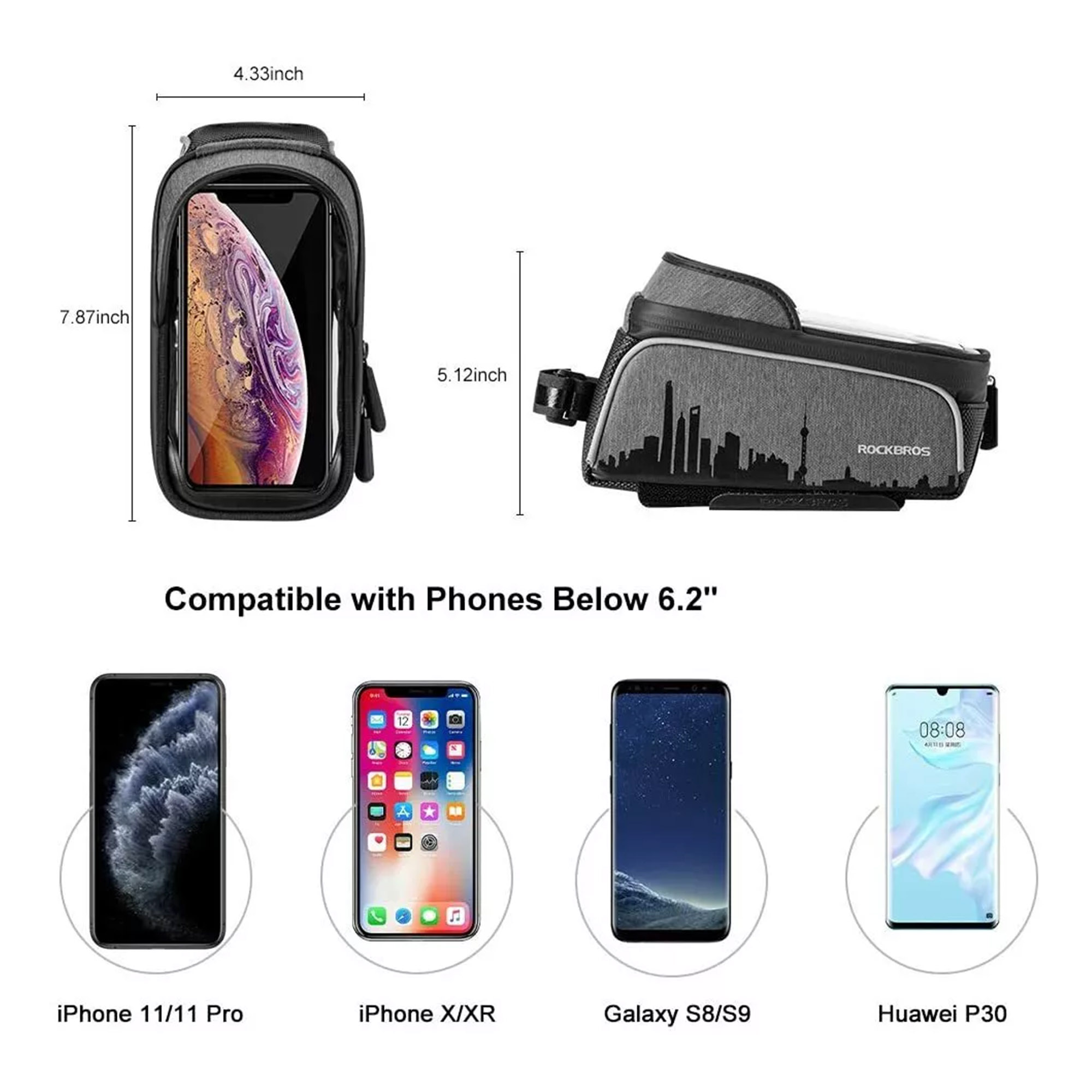 Torbica dovoljno prostora ne samo za vaš telefon, već i za punjač, alat za popravak, mini pumpu itd. Savršeno kompatibilna sa telefonima do 6,5 inča. Visokokvalitetni vanjski materijal od EVA pjene pruža sveobuhvatnu zaštitu torbe za okvir od kiše, prljavštine ili prašine. Laminirani bešavni dvostruki patentni zatvarači osiguravaju bolju otpornost na vodu. Džep za telefon ima debeli zaštitni sloj spužve koji štiti vaš telefon od udaraca. Reflektirajuće trake sa strane osiguravaju vašu sigurnost tokom noćnih vožnji.