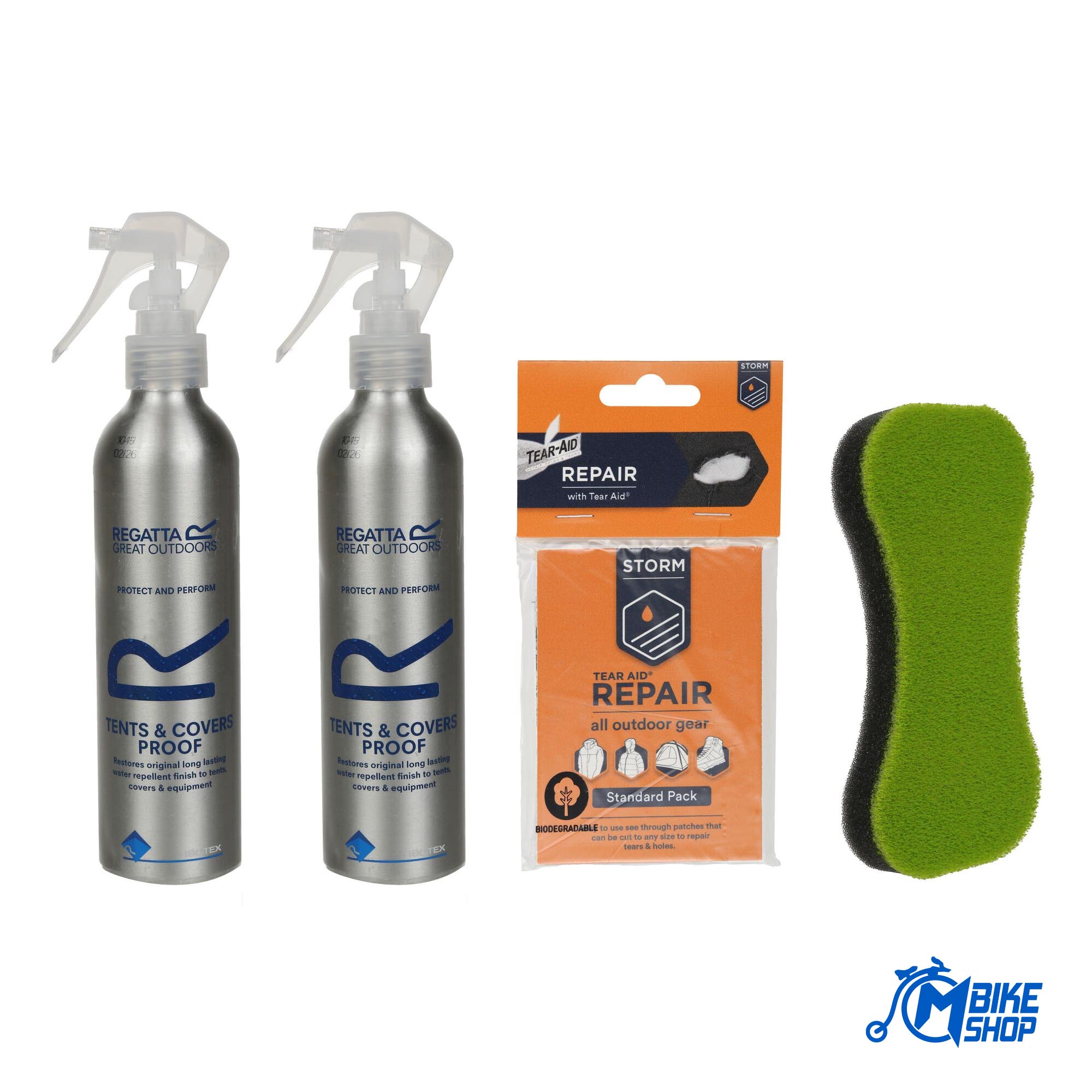 Produžite život svom šatoru sa kompletom za održavanje šatora. Komplet sve u jednom uključuje spužvicu koja ne grebe za pranje, sredstvo za pranje šatora i sprej za otpornost za vraćanje vodoodbojnosti. Za upotrebu na svim vrstama šatora. Bez PFC-a.
