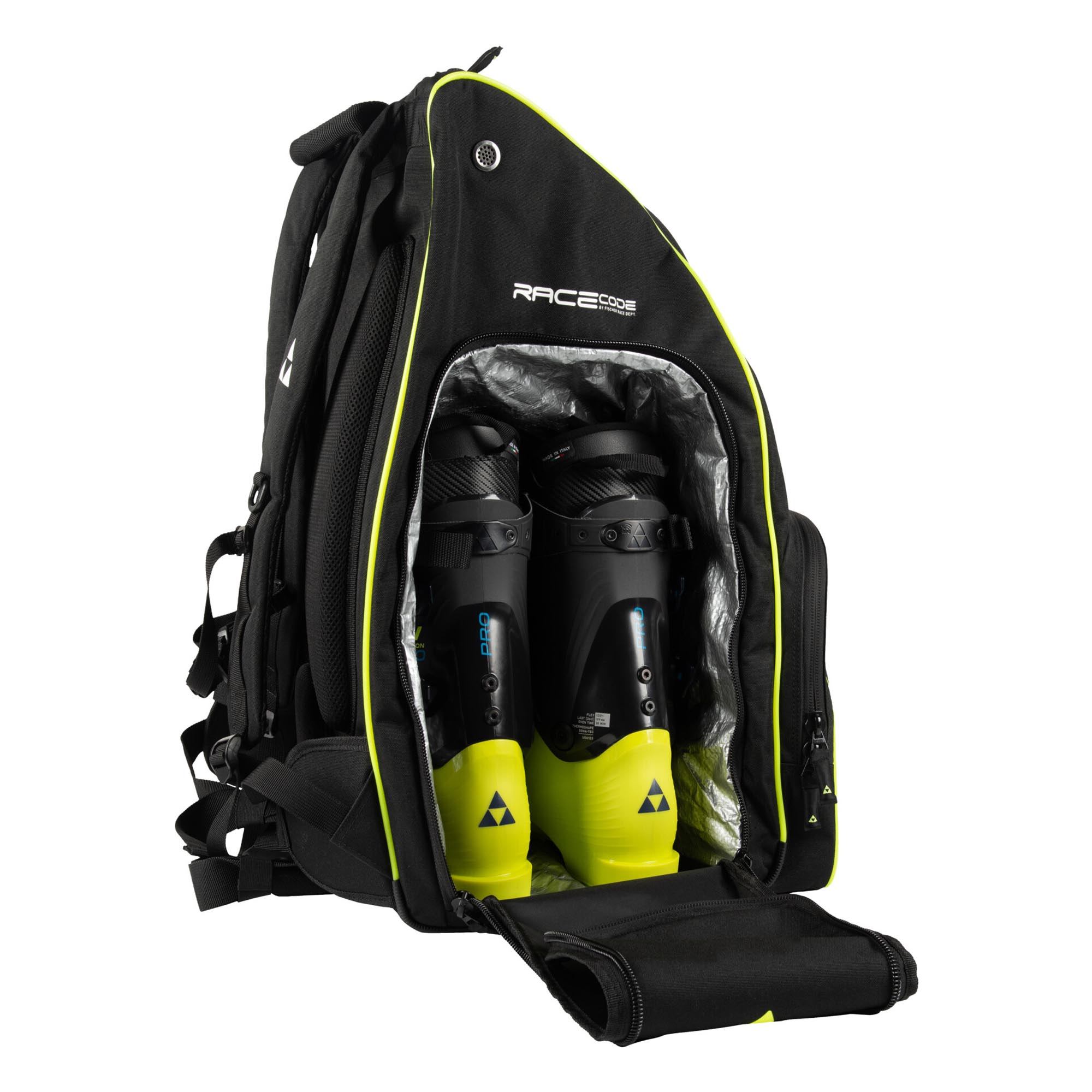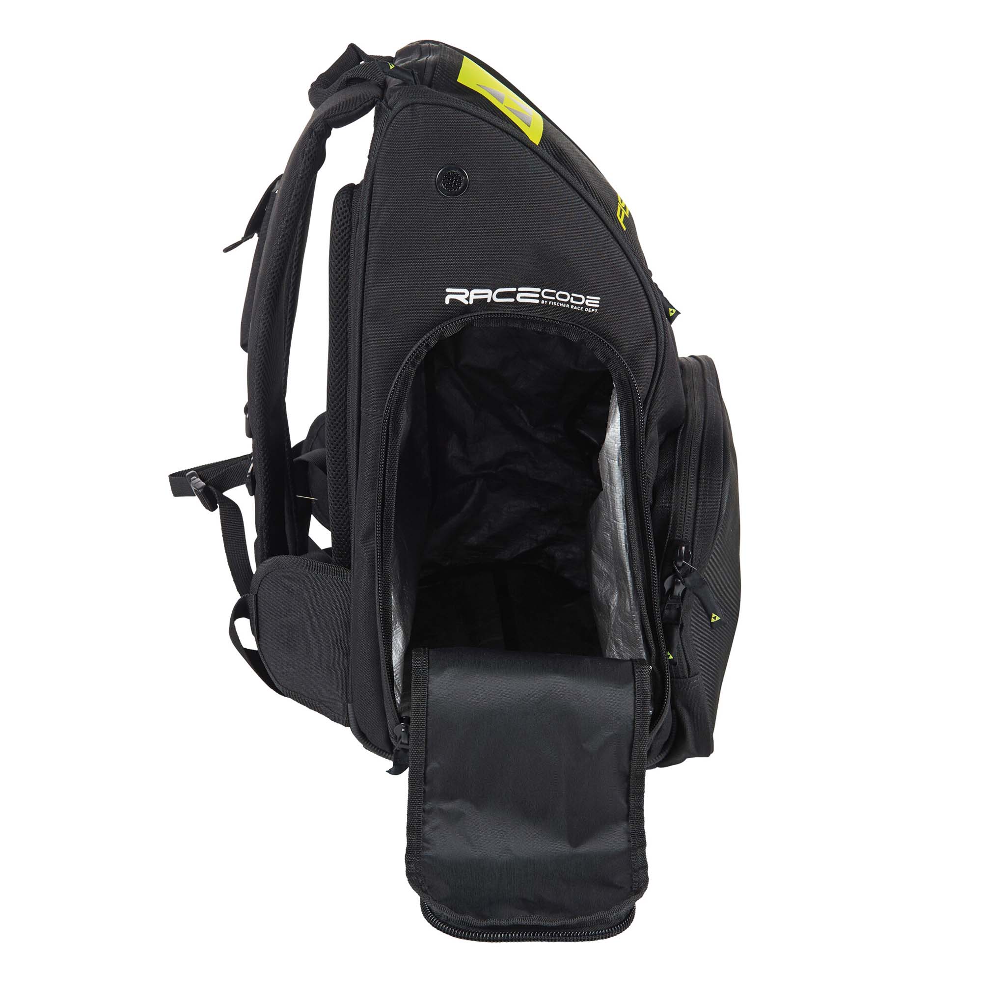 Sa ruksakom FISCHER Race imat ćete 70 litara prostora za sve što vam je potrebno na dan utrke ili na treningu. Vodootporno dno i integrisana navlaka za kišu omogućavaju vam da ga spustite i ostavite na snijegu pored staze ili na brdu bez brige. Rukavice, kapa i naočare imaju zaseban prednji pretinac, a zaseban džep stavlja vašu bocu sa vodom na dohvat ruke. Bočno punjenje džepova olakšava spremanje i odvajanje vlažne opreme.