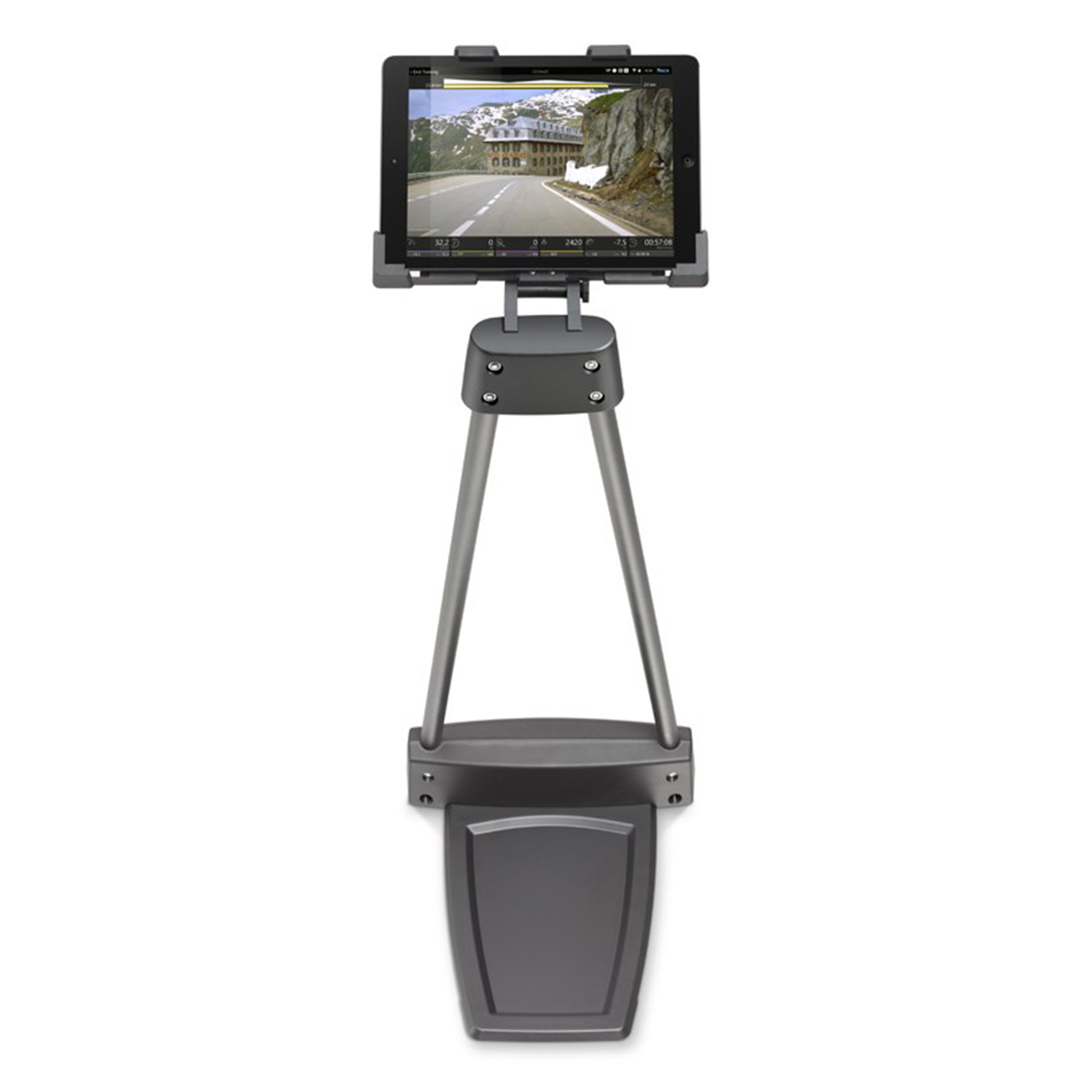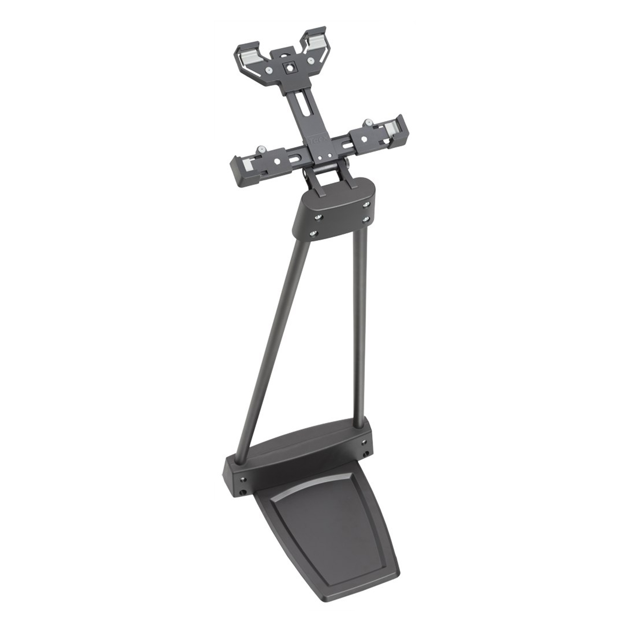TACX držač za tablet koji stoji na podu. Tablet se postavlja na željenu udaljenost, na primjer ispred bicikla. Podesiv za različite veličine tableta (dužina 182-267 mm, širina 112-197 mm, debljina maks. 13 mm). Sa Tacx držačem za tablet uvijek imate svoj zabavni program na vidiku tokom treninga u zatvorenom prostoru.