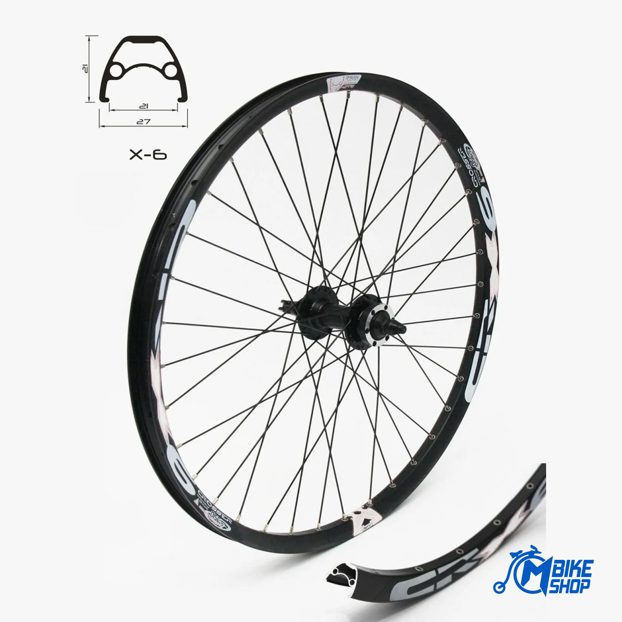 X-6 dvostruki profil za velika opterećenja, bicikli AM (ALL MOUNTAIN), samo za disk kočnice. Dvostrani profil za disk kočnice X-6 ojačan nehrđajućim ušicama. Aluminijska naba diska JYD041 sa 36 rupa Crne žbice, tip...
