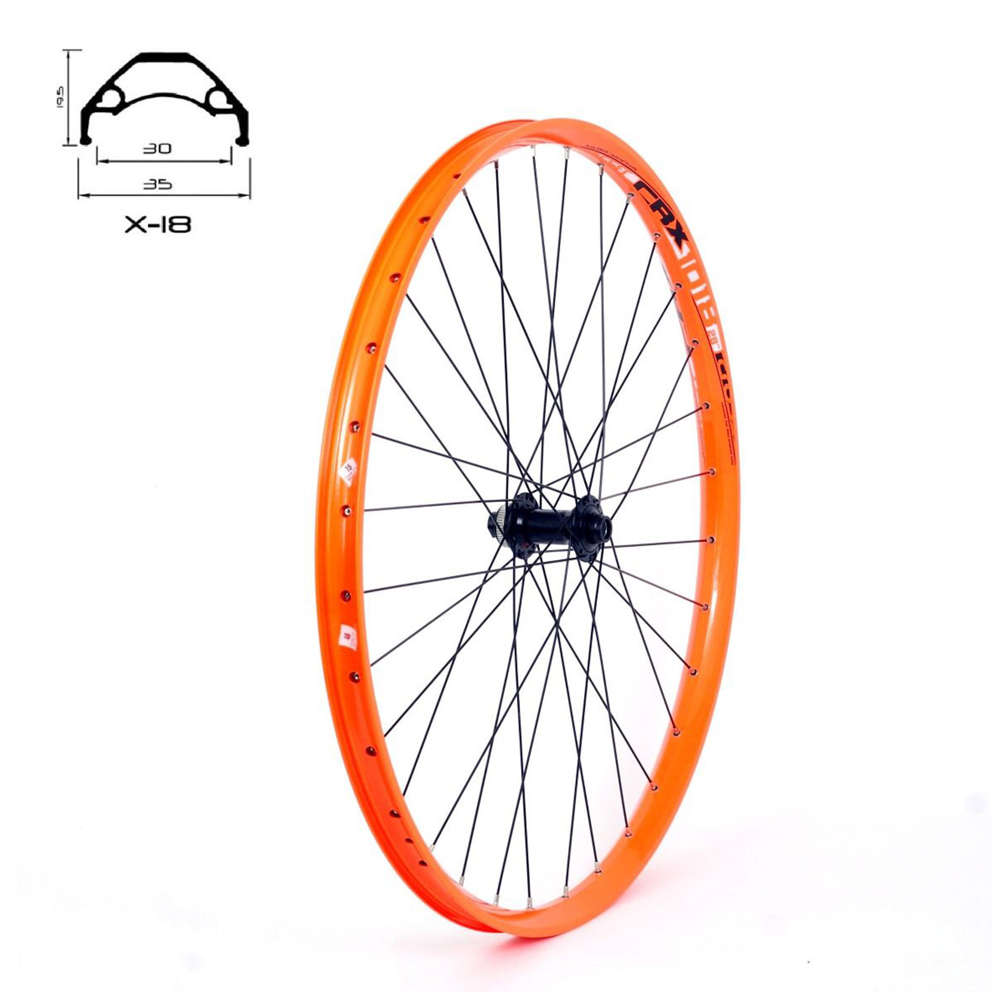 X-18 dvojslojni profil za teška opterećenja za All mountain bicikla. Za disk kočnice. Ojačano ušicama od nehrđajućeg čelika. Za kasetu sa vijencem na utoru. Broj rupa: 32H Vrsta osovine: Quick Release