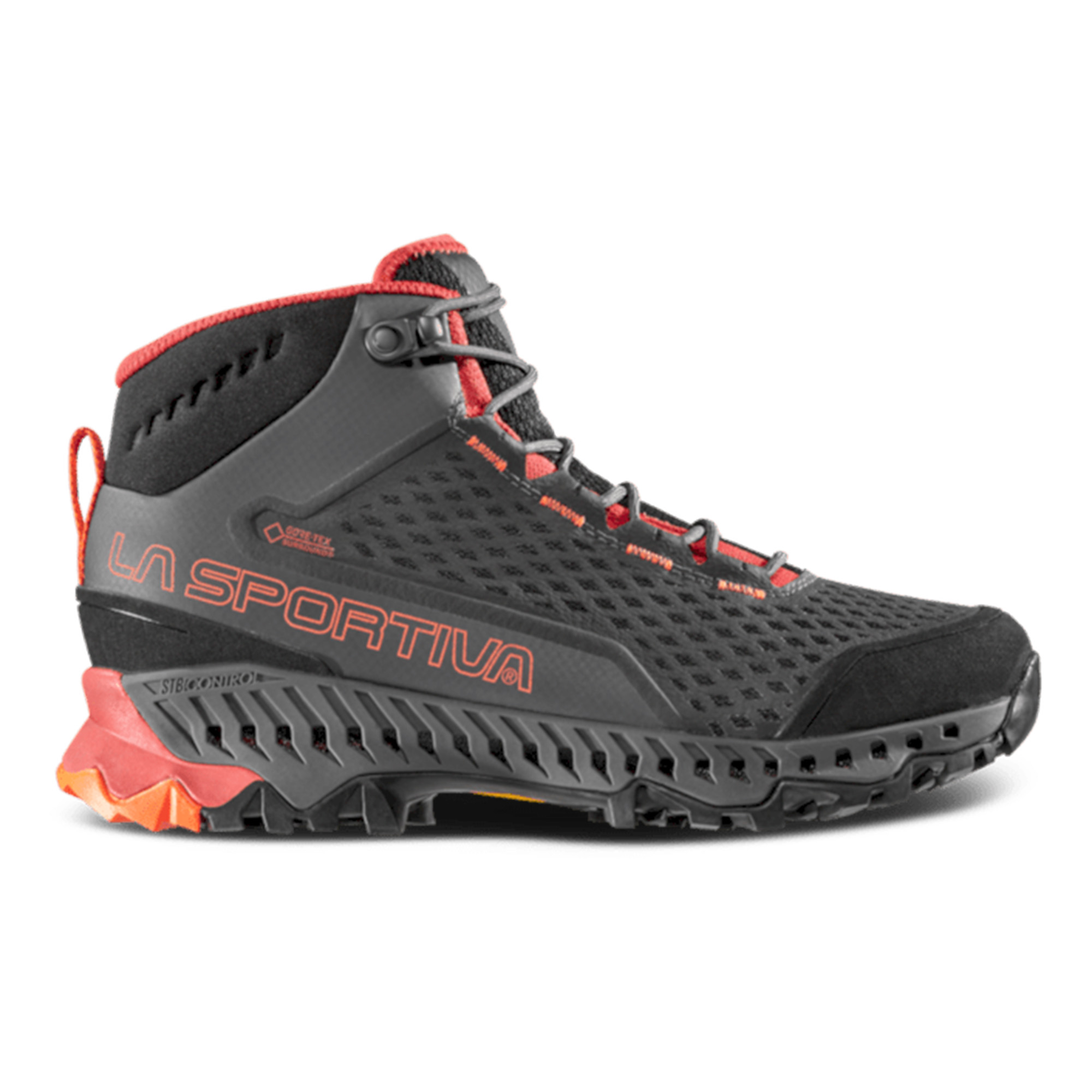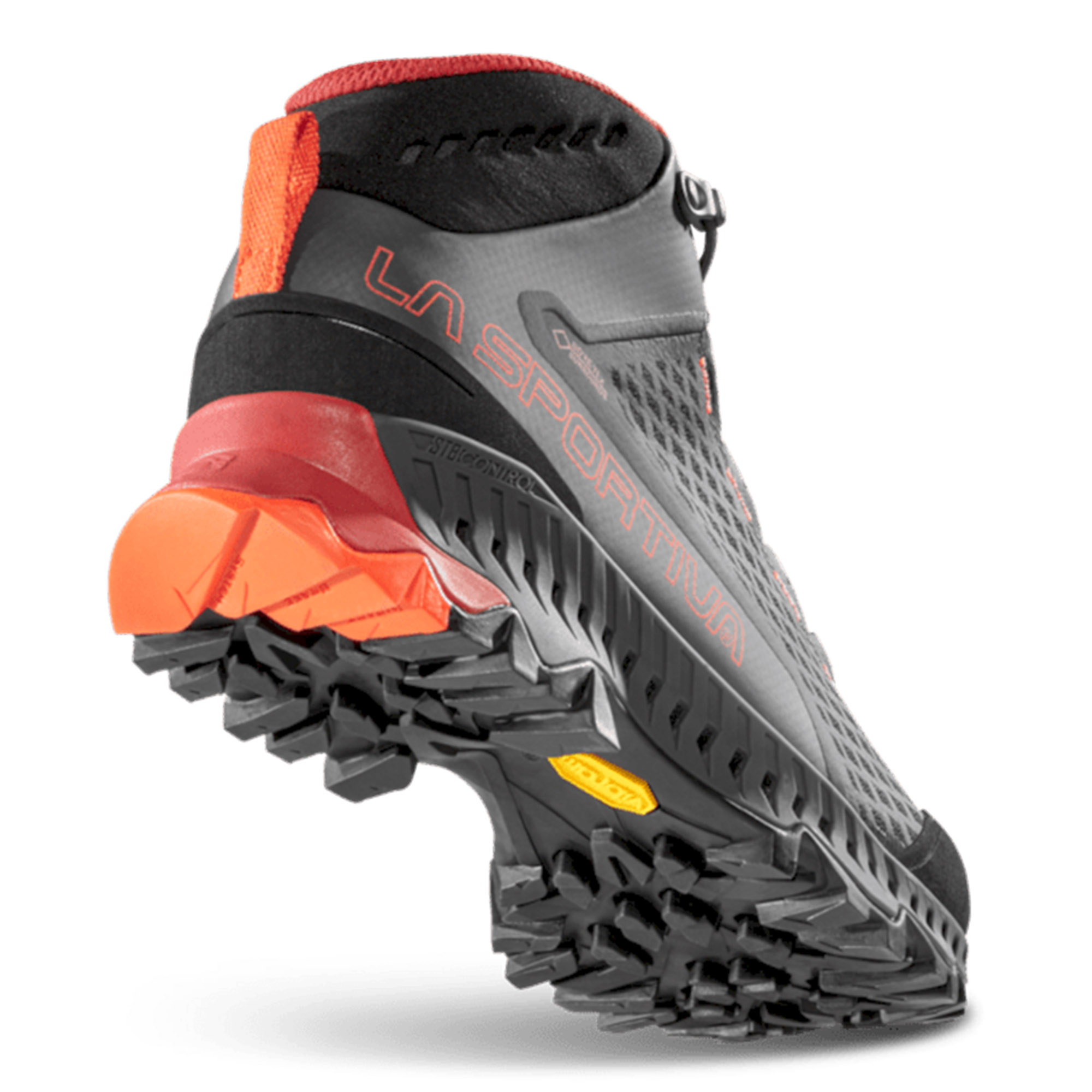 LA SPORTIVA Stream su cipele srednjeg kroja za brzo planinarenje za novu generaciju planinarenja. Usvajaju rješenja koja su dio planinskog DNK La Sportive, kombinujući tehnologije i koncepte izvedene iz kategorija planinskog trčanja i planinarenja kako bi stvorile svestranu, vodootpornu i prozračnu cipelu od 360° zahvaljujući novoj GORE-TEX SURROUND® tehnologiji: ekskluzivnoj membrani koja garantuje prozračnost od 360° zahvaljujući široj površini za prozračivanje koja obuhvata gornjište, uložak i EVA međupotplat sa bočnim otvorima za ventilaciju u TPU-u. Kanali za prozračivanje vidljivi duž profila međupotplata zaštićeni su izuzetno otpornom najlonskom monomrežom kako bi se spriječio ulazak kamenčića i drugih nečistoća u otvore za ventilaciju.